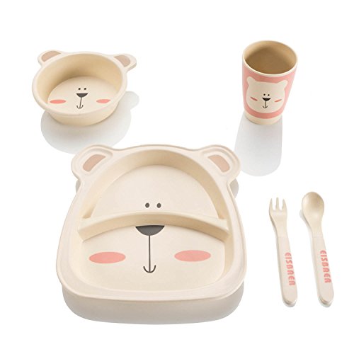- Un completo y perfecto juego para niños: el juego está compuesto de un plato grande subdivido, un plato sopero, una taza, una cuchara y un tenedor, que ofrecen espacio suficiente para un aperitivo sano y sabroso de pepinos, fresas, pan, purés o sopas. Gracias a su divertido diseño de animales, con estas tazas de bambú beber lo suficiente resulta muy fácil.