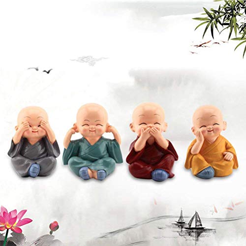 HEALLILY 4 Piezas Pequeño Monje Bebé Estatuas de Buda Figuras Miniaturas Coche Salpicadero Decoraciones Adornos de Jardín de Hadas Estilo Mixto