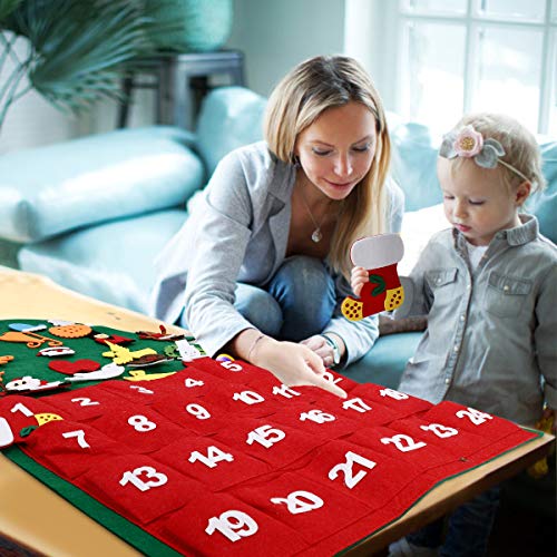 - 【Divertido calendario de bolsillo】 :El árbol de Navidad de fieltro WOSTOO DIY tiene 24 bolsillos, lo que representa 24 días antes de la llegada de la Navidad en diciembre. Los padres y los niños pueden poner regalos o dulces en sus bolsillos y hacer una cuenta regresiva para saludar la Navidad.