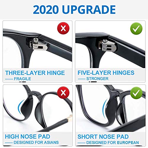 - Almohadillas de nariz mejoradas: las gafas anti rayos de luz azul son más fuertes que nunca, con cinco bisagras y una almohadilla nasal mejorada, más cómodas y sin ejercer presión sobre su nariz. No sentirá dolor y no tendrá que preocuparse por los marcas en su rostro.