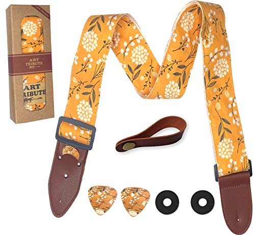 Correa de guitarra Algodón Amarillo Flores de flor de primavera Incluye 2 selecciones + cierres de correa + botón de correa. Para bajo, guitarra eléctrica y acústica. un regalo para hombres y mujeres