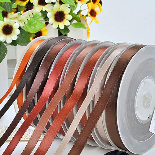 25 28 32 38 mm 100yards / lot del satén y una sola cara del Café oscuro para los regalos de la decoración del banquete de boda hecho a mano de flores de Rose, 846,25mm marrón dorado