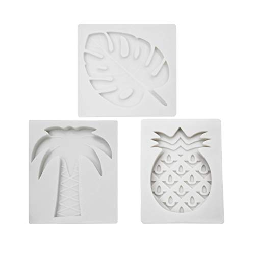 BESTONZON Tema tropical Pastel Fondant Molde, 3 unids Piña Hojas de Palma de Coco Árbol Flores Dulces de Chocolate Magdalena Magdalena Molde para Hawaiian Summer Cake Decorating