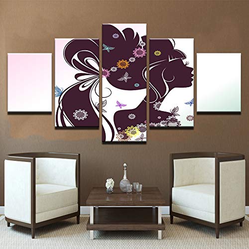 DGGDVP Decoración del hogar Arte de la Pared Imágenes Impresiones en Alta definición Carteles 5 Piezas Hermoso Cabello Largo Florista Silueta de niña Pinturas de Lienzo Tamaño 1 con Marco