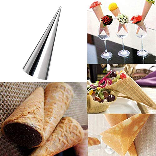 - FUNCIONES: Es una buena herramienta de bricolaje para rellenar con su receta favorita.Ideal para hacer postres rellenos o aperitivos y hornear conchas de pastelería en forma de cono, como cuerno de crema, trompa, paleta, cono de helado pequeño, hojaldre, conos de pizza, cono de gofre y pizelle moldeadora, etc.
