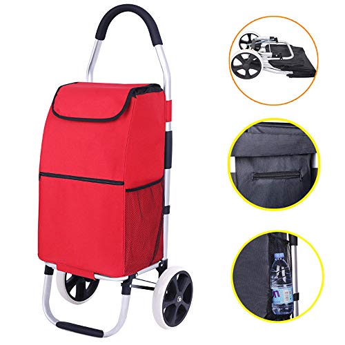 ZCM-Trolley Carro De La Compra, Carro Portátil - Capacidad De Carga De 40 Kg, Bastidor De Aluminio, Bolsa De Compras Impermeable De Gran Capacidad, Adecuado para For, Viajes, Compras,Red