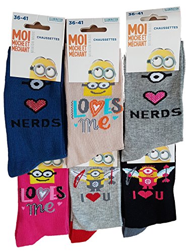 Calcetines para mujer de Disney: Minnie, Princesa, Campanilla, Winnie, Titi, Star Wars de algodón, varios modelos de fotos según disponibilidad. Pack de 6 Asst1 les Minions Talla única