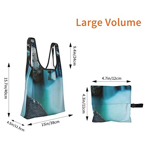 Paisaje Cascada Basalto Rocas Paisaje Rural Parque Nacional Naturaleza Bosques Foto Es Cielo Azul Gris Verde Bolsas Reutilizables, Bolsa de compra Plegable Ecológica Cabe En Bolsillo