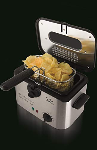 Jata FR226 Freidora con Capacidad de 1 l De Acero Inoxidable Cestillo de Gran Capacidad con Asa Termostato Regulable de Temperatura Tapa Extraíble con Filtro y Visor Libre de BPA y PFOA