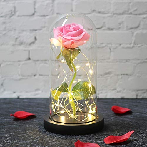 - Dentro de la cúpula transparente hay una fascinante rosa eterna, pétalos bellamente caídos y tallos ajustables que se ven casi reales y nunca se desvanecen.