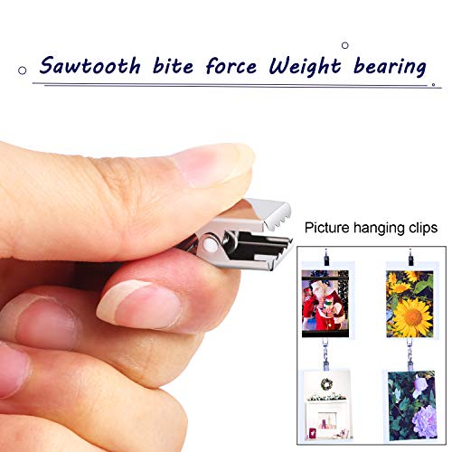 - [CONJUNTO DE CLIP MULTIUSO] - Los clips colgantes de níquel satinado se pueden usar para proyectos de arte para niños, colgar cortinas y exhibir fotografías; Las posibilidades creativas son infinitas. La apertura de los dientes de metal facilita el uso de clips y mantiene un agarre firme.