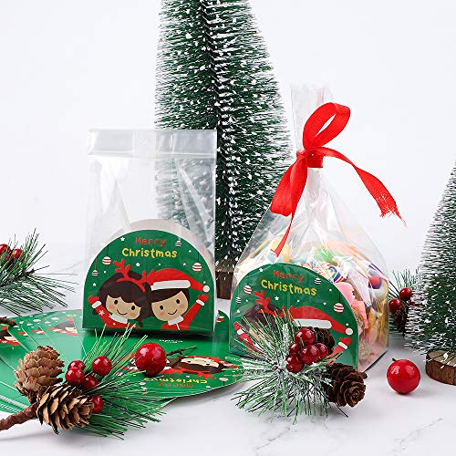 - ➤ El paquete incluye: 50 paquetes de bolsas de galletas navideñas + 50 tarjetas rojas de feliz Navidad + 1 rollo de cinta roja de Navidad de 22 metros de 10 mm + 1 rollo de cinta de Navidad verde de 22 metros de 10 mm + 50 pegatinas navideñas.