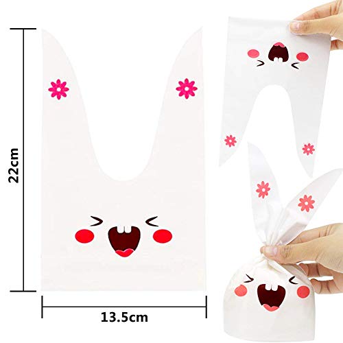 JZK 100 x Bolsas Regalo cumpleaños de plástico Forma de Conejo para Confeti merienda carameros Galleta piscolabis Frutos Secos Caramelos Chocolate