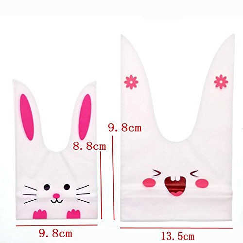 - El paquete contiene:100 (50 conejos de tamaño pequeño + 50 tamaño mini gato) bolsitas regalo chuches plástico con largas orejas para amarrar. ★ Tamaño plano de la parte disponible real: (talla pequeña)13.5 x 9.8 cm & (tamaño mini) 9.8 x 8.8 cm (Excluyendo la parte del oído).