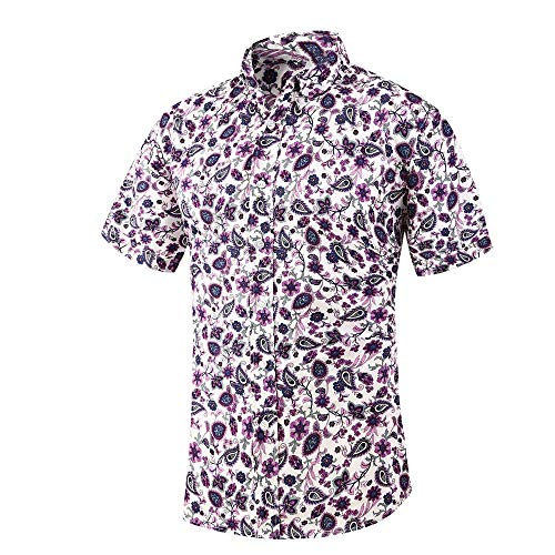 NOBRAND - Camisa de verano para hombre, diseño de flores Morado violeta M