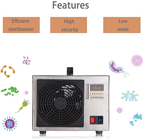 - Alta calidad: esta máquina de ozono puede matar o reducir el moho, las bacterias, los virus y los olores fuertes. Hecho de carcasa de acero inoxidable resistente a la corrosión.