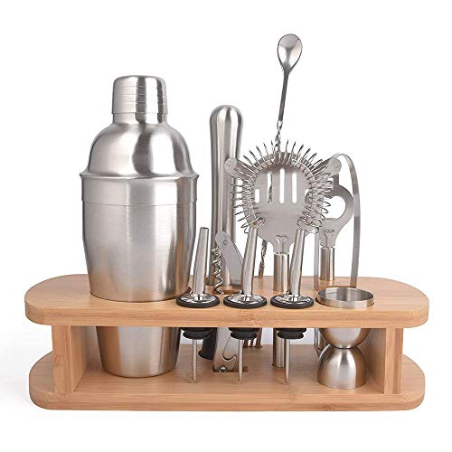 ILS - Juego de 12 coctelera para cócteles con base de madera de acero inoxidable