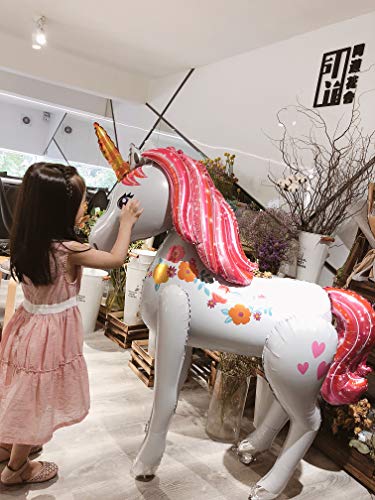 - HIGH QUALITY:Unicorn balloons are made of aluminium foil,hard to burst and can be inflated by air or helium based on your need.banners are made from paper that has no harm to human body.