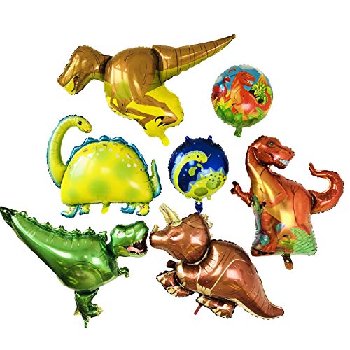 O-Kinee Globo de dinosaurio,8 pcs Dinosaurio Globo de Helio,Globos Dinosaurios de Papel de Aluminio,Dinosaurio Jurásico Globos Fiesta,Suministros de Decoración de Cumpleaños Para Niños (8 pcs)
