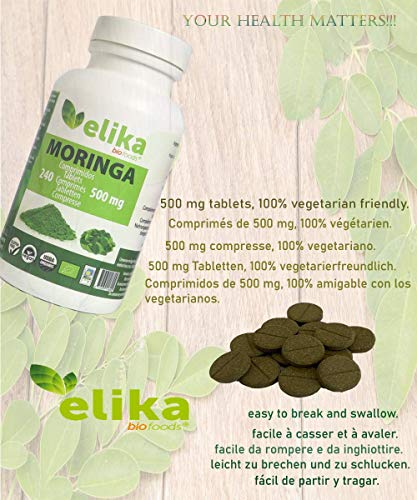 Elikafoods - Moringa oleífera bio, 240 comprimidos de 500 mg/orgánica pura en polvo, ecológica