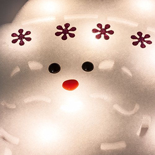 - MEDIDAS: Muñeco de nieve bidimensional de 49 centímetros de altura hecho de plástico ligero para poderlo colgar en cualquier parte con facilidad. Este adorno navideño se ilumina gracias a 20 luces Led.