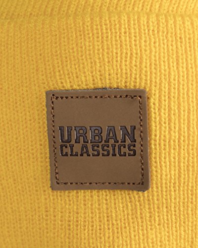 Urban Classics Leatherpatch Long Beanie Gorro de Punto, Amarillo (Chrome Yellow 1148), Talla única Unisex Adulto