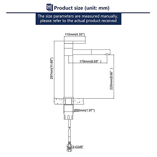 - Fácil de Instalar: Conexión estándar de 3/8 "para una fácil instalación. Dimensiones altura ca.297mm, ancho ca.170mm, profundidad ca.220mm, como se muestra.
