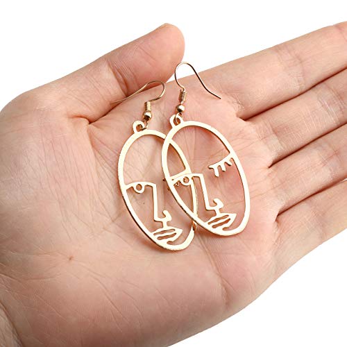 - *Pendientes de botón abstractos con máscara de cara humana, para mujeres, niñas, dorados, para mujer, arte abstracto, colgantes, colgantes, chapados en oro, con gancho, ideal para regalo, fiesta, boda.