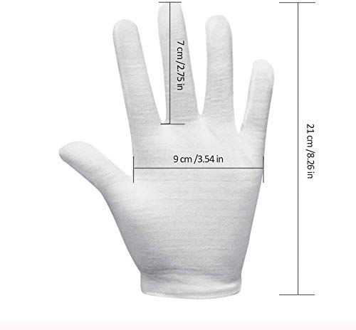 - Gran cantidad: se incluyen totalmente 6 pares (12 piezas) de guantes 100% de algodón blanco.