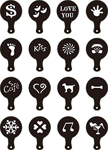- APLICACIÓN: Esbozado con agujero o tapas de malla fina permite la cantidad perfecta de sal, pimienta o coco, canela en polvo para ser dispensado. Vienen con 16 plantillas de decoración de café, 16 tipos diferentes de patrones, satisfacer todas tus necesidades y preferencias.