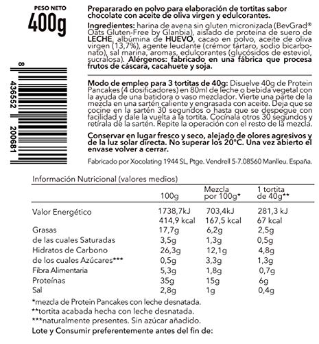 - HECHOS CON BUENOS INGREDIENTES: Hechos con buenos ingredientes: avena integral certificada sin gluten, proteína de leche sin lactosa, huevo y aceite de oliva virgen para que nunca se te peguen a la sartén.