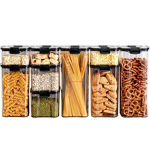 YYBF Hermético del envase de Almacenamiento de Alimentos, Tapas con Cerradura para Mantener los Alimentos Frescos (9Pack) Ideal para harina, Granos, Fideos, pastas y más