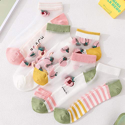 ROUNDER Calcetines de Seda de Hielo de Seda de Cristal de Helado Calcetines de Fruta de Seda de Vidrio Respirable para Mujer Talla única 5 Pares-melocotón