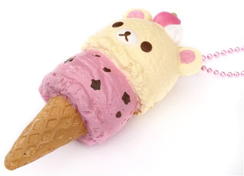 - gracioso colgante Squishy para móvil en forma de helado de color crema de la osita Korilakkuma con nata montada y cereza