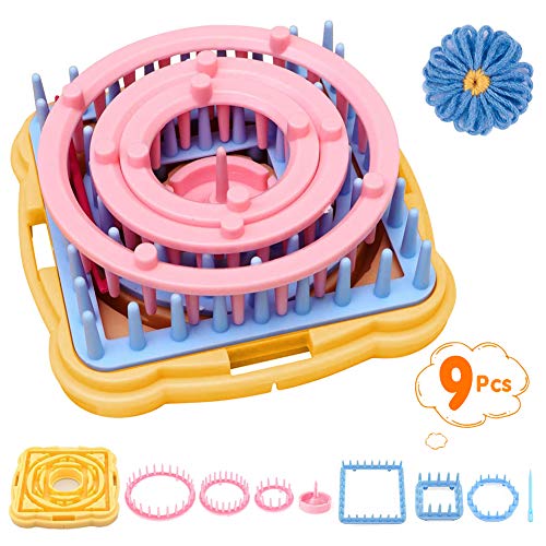 - ⭐ Recibirás accesorios para máquina de tejer: ⭐ ------- El juego de 9 anillos de punto se compone de una base inferior, un eje central, una aguja de gobelin, una cubierta transparente, un marco hexagonal, dos marcos cuadrados y tres marcos redondos y manual de usuario en inglés.