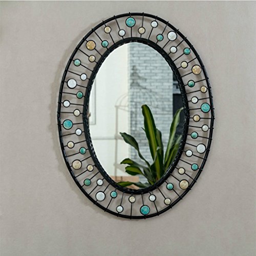 Espejo de pared de baño Montado en la pared Espejo de pared ovalado Vertical Mar de vidrio Espejo de pared de pared Pasillo Cuarto de baño Europeo Marco de hierro forjado Espejo de alta definición