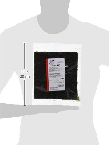- Eash hoja sush nori es de aproximadamente 19 cm x 22 cm.