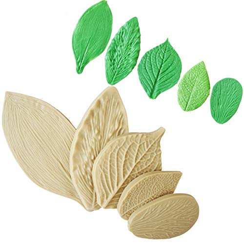 Voarge Molde de silicona para Fondant Decoración de tartas Hoja Cortador de Azúcar Flores Cortador Fondant Set 5 Piezas