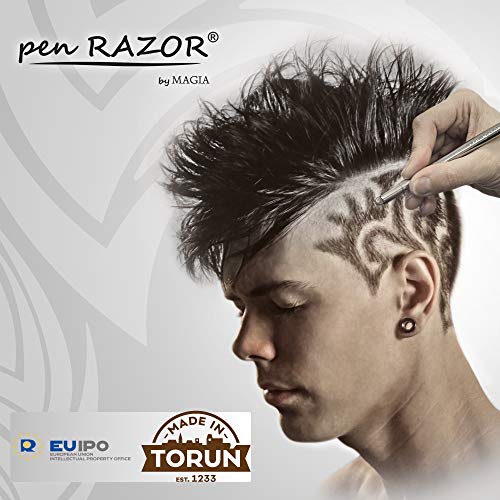 - ✂️ Pen RAZOR by Magia – es una navaja de afeitar innovadora, una „pluma afilada” con las hojas desechables, sirve para contornear con precisión el vello facial (barbas, bigotes, patillas), contornear el cuero cabelludo, estilizar las cejas, crear dibujos en el cabello, afeitar la raya.