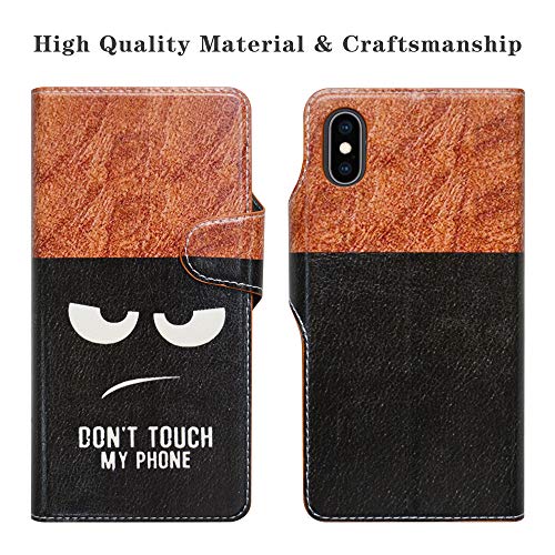 HHDY Apple iPhone X Funda, Diseño PU Cuero Libro Soporte Plegable y Ranuras para Tarjetas Dibujos Caso Cover para Apple iPhone X/iPhone XS,Don't Touch