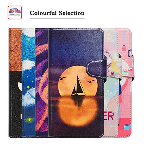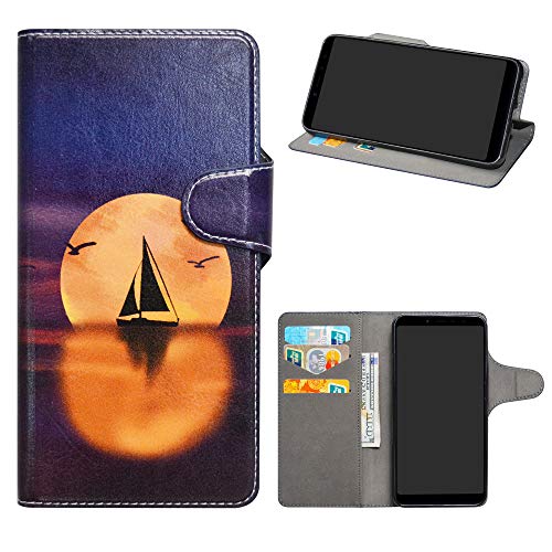 HHDY Xiaomi Redmi S2 Funda, Diseño PU Cuero Libro Soporte Plegable y Ranuras para Tarjetas Dibujos Caso Cover para Xiaomi Redmi S2 / Redmi Y2,Sailboats & Moon