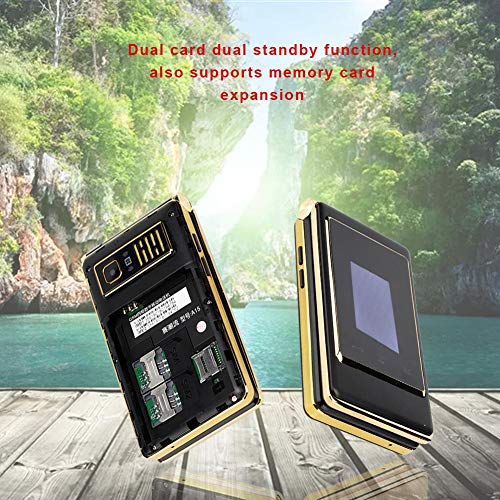 Oumij Teléfono Flip - Teléfono Celular Móvil Metal - Doble Tarjeta Doble Modo Espera - Pantalla Dual (3.0 Pulgadas + 1.44 Pulgadas) - Batería 6800mah - Tarjeta Memoria Compatible con 32G(Enchufe EU)