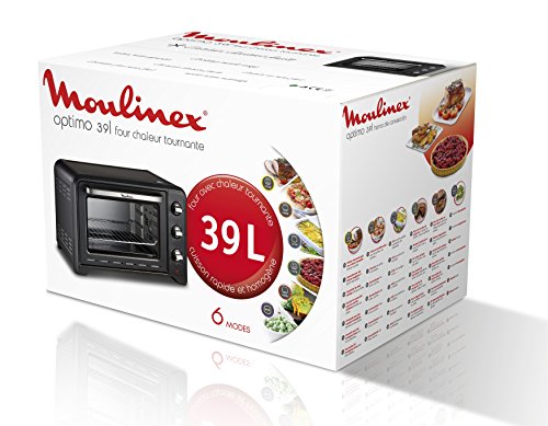 Moulinex Optimo OX484810 - Horno de Conveccción 39 L, 6 Modos de Cocción con Termostato de hasta 240º y Temporizador hasta 120 Minutos, Bandeja de Horneado y Rejillas Reversibles, Diseño Compacto