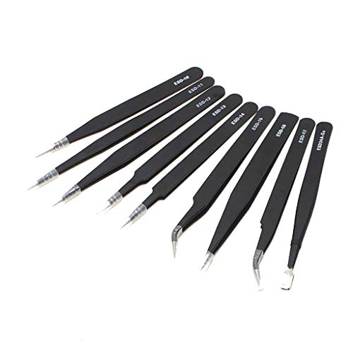 Moent Herramientas y mejoras para el hogar 9 Piezas Precision ESD Reparación antiestática Pinzas de Acero Inoxidable Set Kit Herramientas Pinzas de Metal