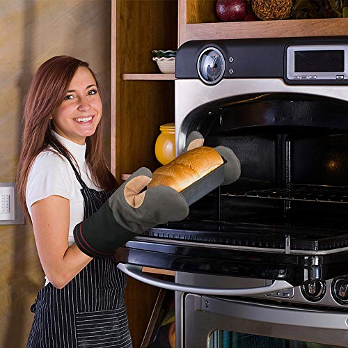 AYADA Guantes de Horno Dobles, Guantes de Cocina Resistentes al Calor 500°F Antideslizante Manoplas de Horno Profesional Largo y Grueso Algodón Suave Cuero Oven Gloves para Cocina Horneando Barbacoa