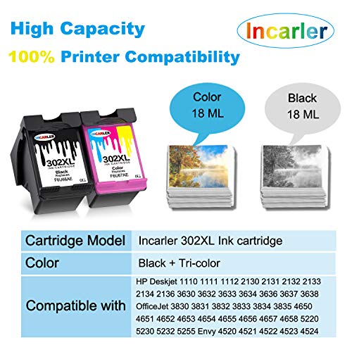 - 【Contenido】2 paquetes Incarler Remanufacturado 302XL para 1 x Negro 302 XL, 1 x Tri-Color 302 XL.