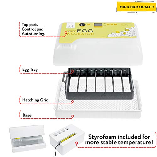 - NUEVOS MATERIALES ERGONÓMICOS. Gracias a la transparencia de los materiales usted tendrá una gran visión de la evolución de los huevos y del nivel del agua. Incluye funda de porexpan para mejor aislación térmica.
