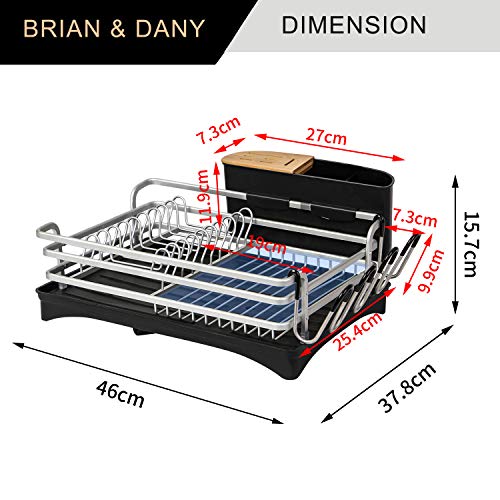 BRIAN & DANY Escurridor de Platos de Aluminio, Soportes para Platos con Bandeja de Goteo y desagüe Giratorio, Plata