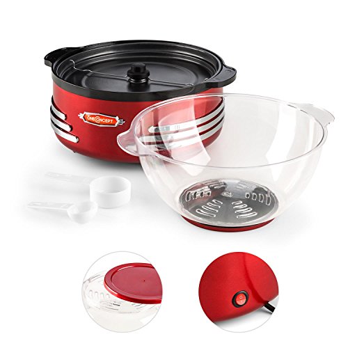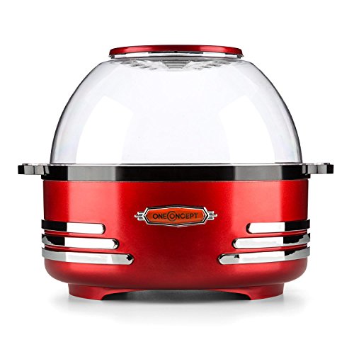 - DISEÑO DE LOS AÑOS 50: La maravilla de palomitas de maíz de oneConcept se hace brillar con su auténtico diseño de los dorados años cincuenta. El color rojo brillante con las paredes laterales transparentes trae al hogar el verdadero estilo del lobby del cine.