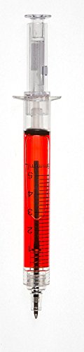 - ● 4 bolígrafos de jeringa para estudiantes. A los niños les gusta imaginar cómo pueden copiar a los adultos; Los bolígrafos con jeringas con aguja falsa de la novedad son perfectos para hacer creer que están actuando como médicos. Hace un regalo hermoso y práctico como un artículo de mochila escolar o de oficina de negocios.